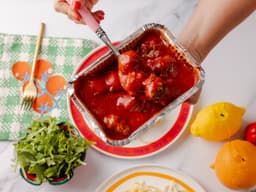 Tomato and Basil Sauce [Mutti tomato passata, Water, Onion, Olive oil, Sugar, Balsamic vinegar (Sulphites), Basil, Garlic, Salt, Black pepper], Beef mince, Apple, Onion, Parsley, Salt, White pepper