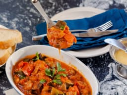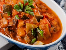Zucchini, eggplant and capsicums braised with tomatoes and basil. Great with rice or as an accompaniment to grilled meats.