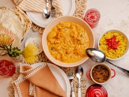 Coconut milk, Cauliflower, Chickpea, Water, Tomato, Onion, Carrot, Baby spinach, Sweet potato, Tomato paste, Lime juice, Coriander, Olive oil, Garlic, Ground cumin, Salt, Ground ginger, Ground coriander, Turmeric, Cinnamon sticks, Chilli powder, White pepper