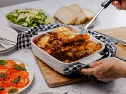 Layers of bolognaise, pasta and bechamel sauce, topped with Parmesan. Serve with a fresh garden salad and keep all of the family happy.