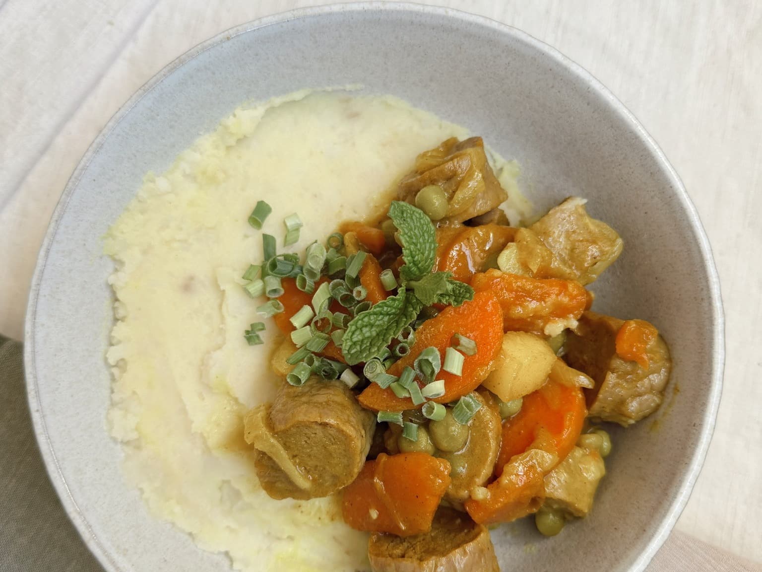 Curried sausages just the way mum used to make them. Flavour packed, a little sweet a little savoury. Served on a bed of fluffy mash this dish is perfect for the whole family.