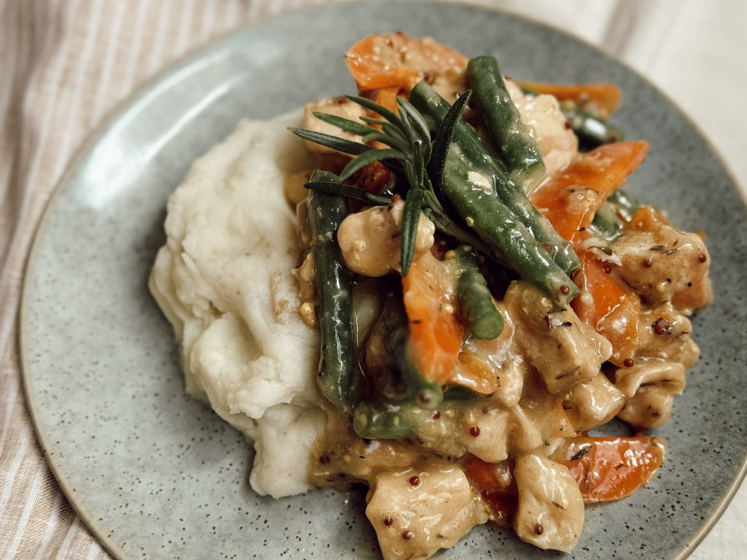 Tender chicken simmered in a luscious honey mustard sauce. Tangy & sweet, every bite is packed with flavour. Served with fluffy mashed potato this chicken dish will be sure to satisfy the whole family.