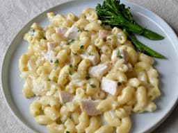 Macaroni pasta (Wheat), Broccoli, Cheese (Milk), Milk, Chicken stock, Flour (GF), Onion, Parmesan (Milk)