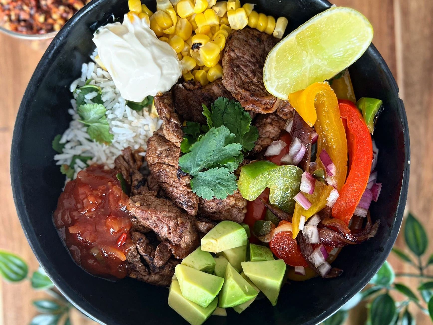 Introducing our delectable Steak Fajitas Bowl—a flavorful feast designed for those prioritizing health, fitness, and the convenience of meal prep.Crafted with premium ingredients and bursting with vibrant flavors, our Steak Fajitas Bowl is a culinary masterpiece that's sure to delight your taste buds. Tender strips of succulent steak are marinated in a tantalizing blend of spices, then grilled to perfection for that irresistible charred flavor. Whether you're fueling up for a workout, refueling post-gym, or simply seeking a convenient and satisfying meal prep option for your busy lifestyle, our Steak Fajitas Bowl has you covered. With its balance of protein, veggies, and flavor, it's the perfect solution for those who demand both taste and nutrition in their meals.
