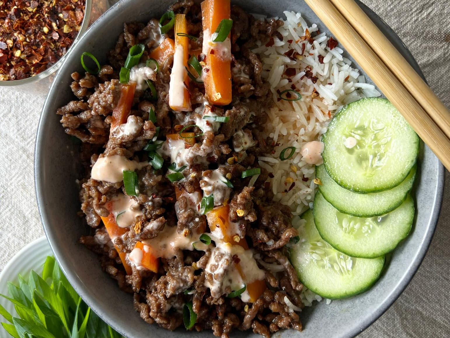 Step into a world of savory delight with our Raw to the Souls Beef Mince Bulgogi with Basmati Rice, a tantalizing fusion of flavors that promises to elevate your mealtime experience. Picture this: tender beef mince, marinated in a rich Bulgogi sauce crafted from a blend of soy sauce, garlic, and just a hint of sweetness. Each bite is a symphony of savory goodness, perfectly complemented by the caramelized edges that add depth to every mouthful. Served alongside fluffy basmati rice, steamed to perfection, our Beef Mince Bulgogi offers a satisfying balance of textures and tastes. The fragrant rice acts as the ideal canvas for the bold flavours of the Bulgogi, creating a culinary experience that's as comforting as it is delicious.