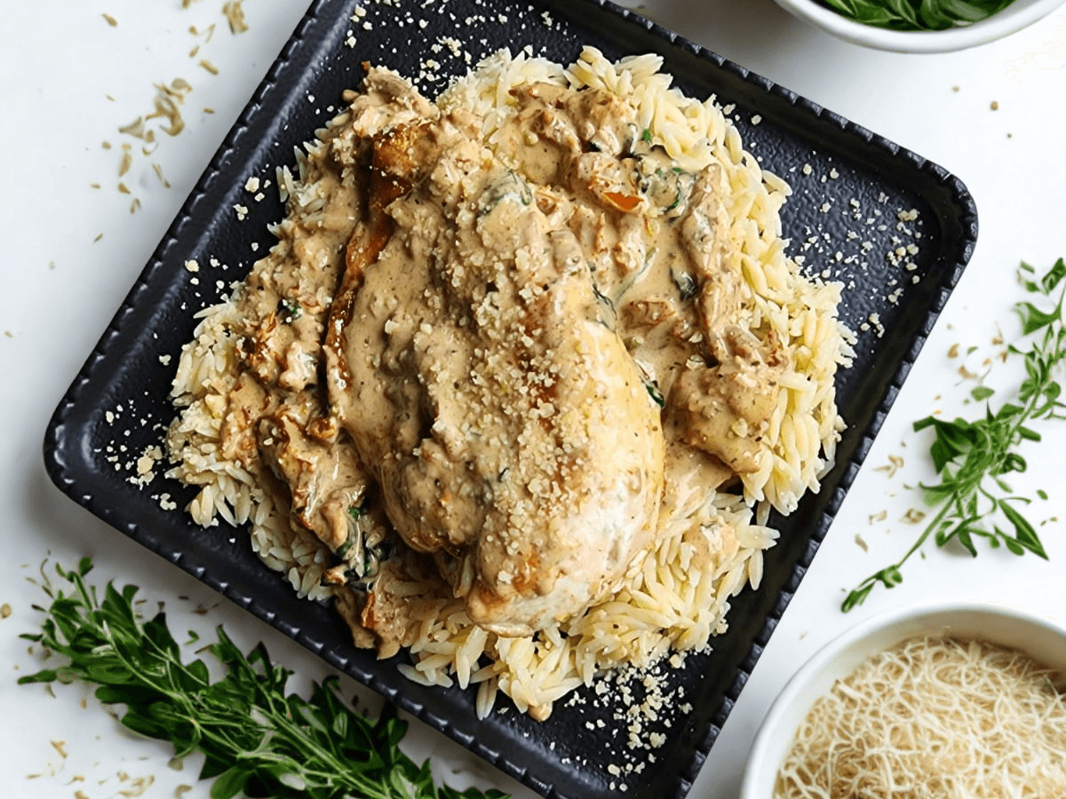 Fall in love with flavour — our Marry Me Chicken is a creamy, comforting classic with a modern twist. Tender chicken breast is simmered in a rich parmesan sauce, tossed with buttery risoni pasta, and finished with sweet sun-dried tomatoes for a burst of flavour. Fresh herbs add the perfect pop of colour and balance, making every bite irresistible.This dish is designed to be more than just dinner — it’s a hearty, soul-warming meal that brings everyone to the table. Whether it’s a busy weeknight or a special treat, this one’s guaranteed to win hearts.