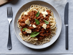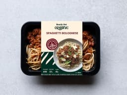 Organic Beef Bolognese [Organic onion, Organic beef, Organic tomato, Organic carrot, Organic celery], Organic spaghetti (Wheat), Organic parmesan (Milk)