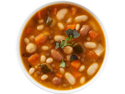 Organic pumpkin, Organic zucchini, Organic sweet potato, Organic carrot, Organic turnip, Organic tomato, Organic celery, Organic cauliflower, Organic cabbage, Organic onion, Organic pearl barley, Organic red lentils, Organic chickpea, Organic white beans, Organic lima beans, Organic borlotti beans, Fresh organic herbs, Water, Salt, Extra virgin olive oil