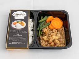 Soy sauce, Chicken, Rice, Cornflour, Carrots, Beans, Lime, Orange, Ginger, Garlic, Chilli, Sugar, Colour, Water, Coconut cream, Acidity regulator, Flavour enhancer [E631, E627], Cooking wine [water alcohol [16%], food additive, caramel] (Wheat)