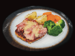 A classic take on chicken parmigiana with our house-made Napoli sauce, double-smoked ham and tasty cheese served with steamed vegetables and lemon potatoes.