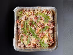 House made pizza base with tastiest bbq chicken, our famous streaky bacon, rocket and toppings of creamy mayo.