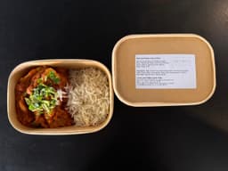 Beef & Potato Curry Batch [Crushed tomato, Diced Beef, Brown onion, Potato, Water, Curry powder, Extra virgin olive oil, Garlic, Salt, Pepper ground], Cooked Rice [Water, Basmati rice], Fresh coriander