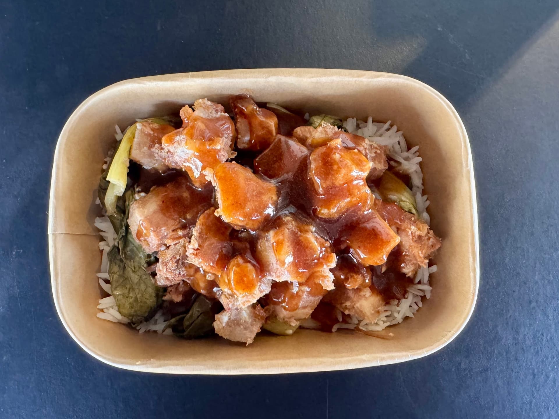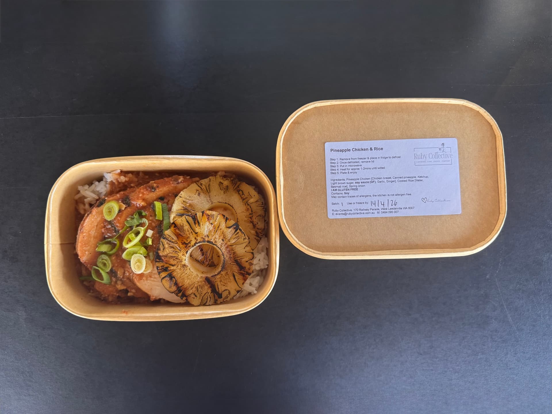 A vibrant balance of sweet and savoury. Tender chicken pieces are cooked with juicy pineapple, and a touch of ginger, then tossed in a light, tangy sauce. Served over fluffy steamed rice for a dish that’s fresh, flavourful, and perfectly satisfying.