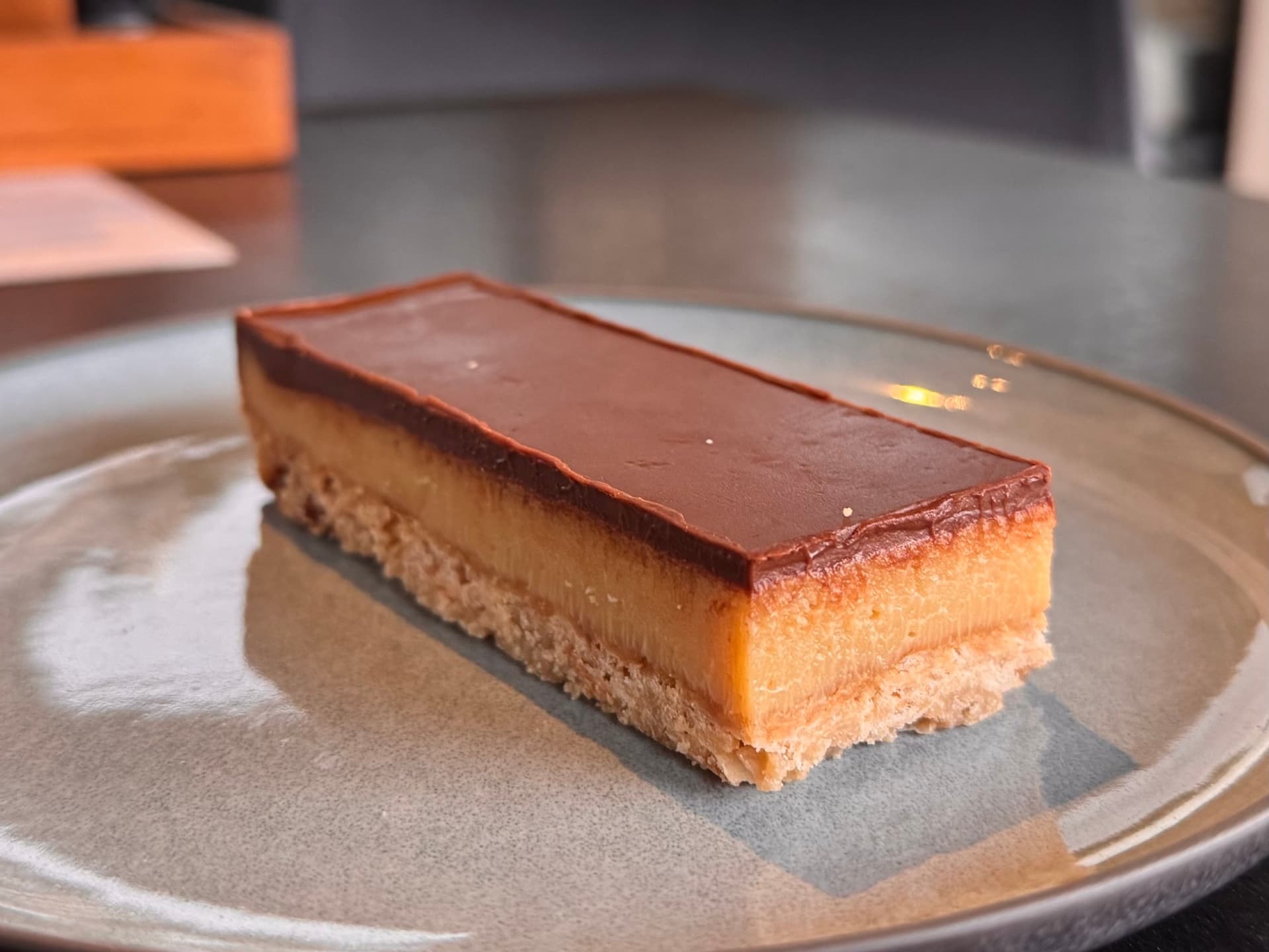 A rich, gluten-free caramel slice with a buttery base, smooth caramel center, and a crisp chocolate top — the ultimate sweet treat!