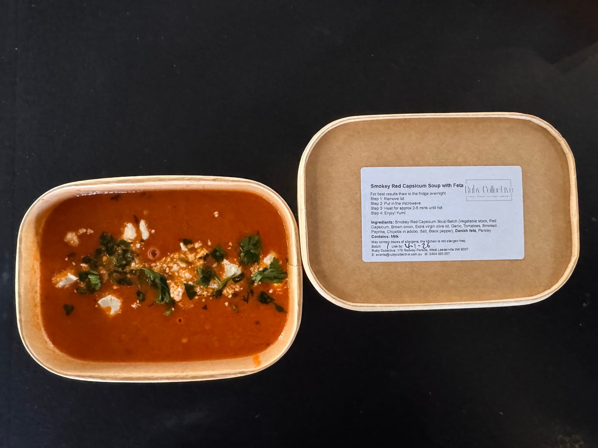 A bold, velvety blend of roasted red capsicum, tomato, and onion, infused with garlic, smoked paprika, and chipotle in adobo. Finished with a rich vegetable stock for a warming, smoky depth.