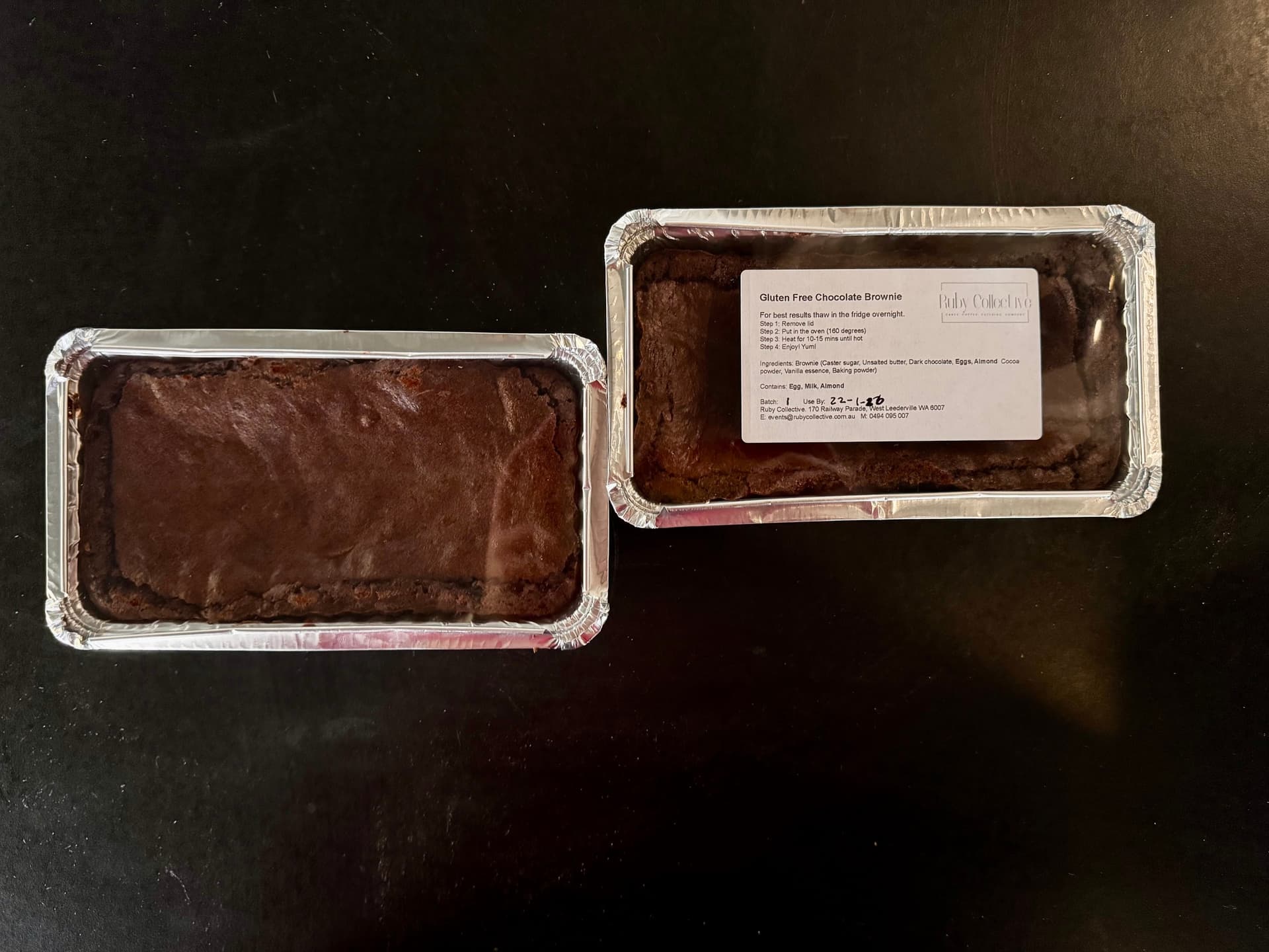 Our best-selling, rich and decadent chewy chocolatey brownie and, surprisingly, gluten-free!