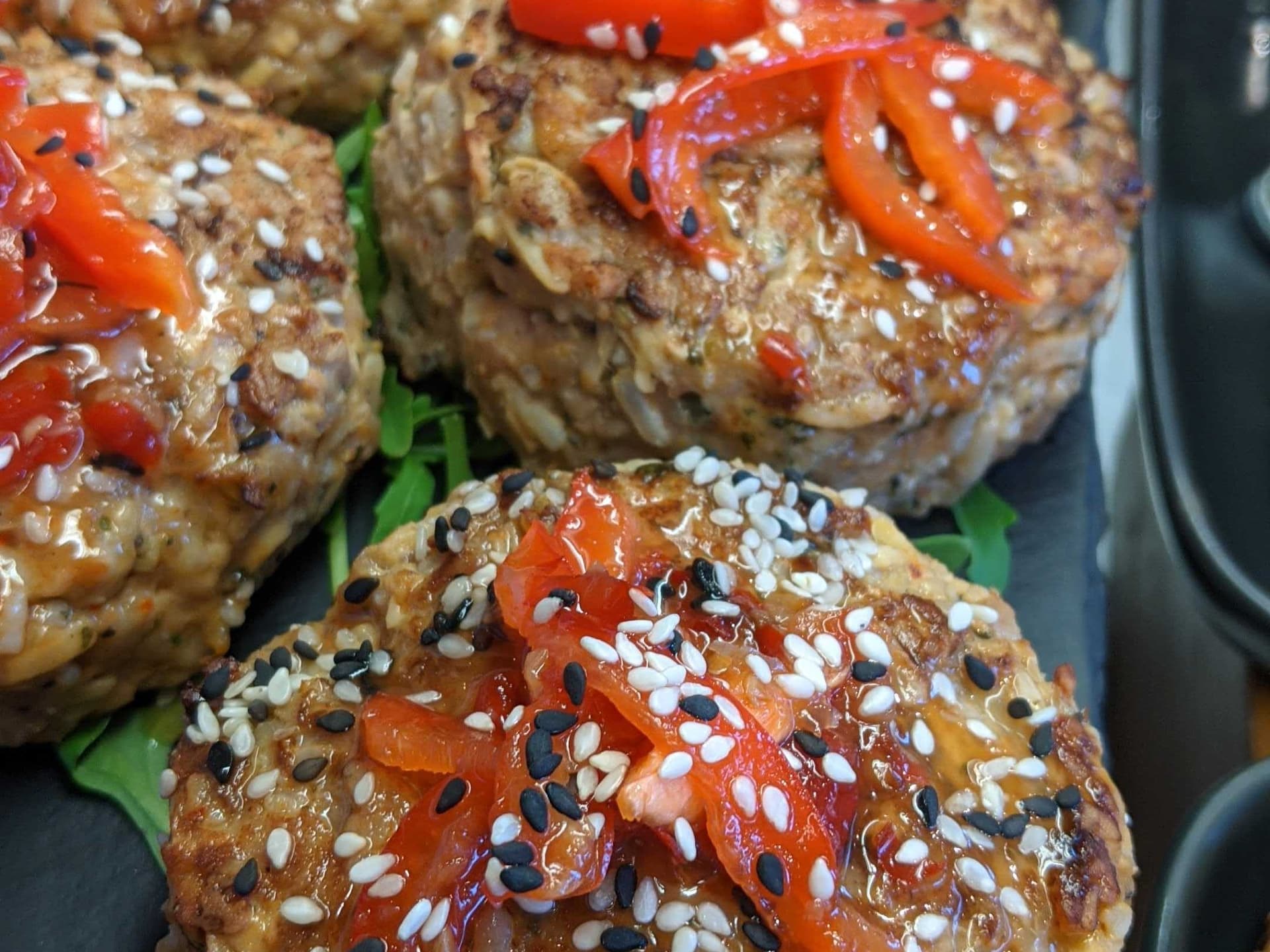 Our Thai chicken cakes are a delicious and flavourful light meal. They feature minced chicken with an aromatic red curry paste, coriander, and coconut.