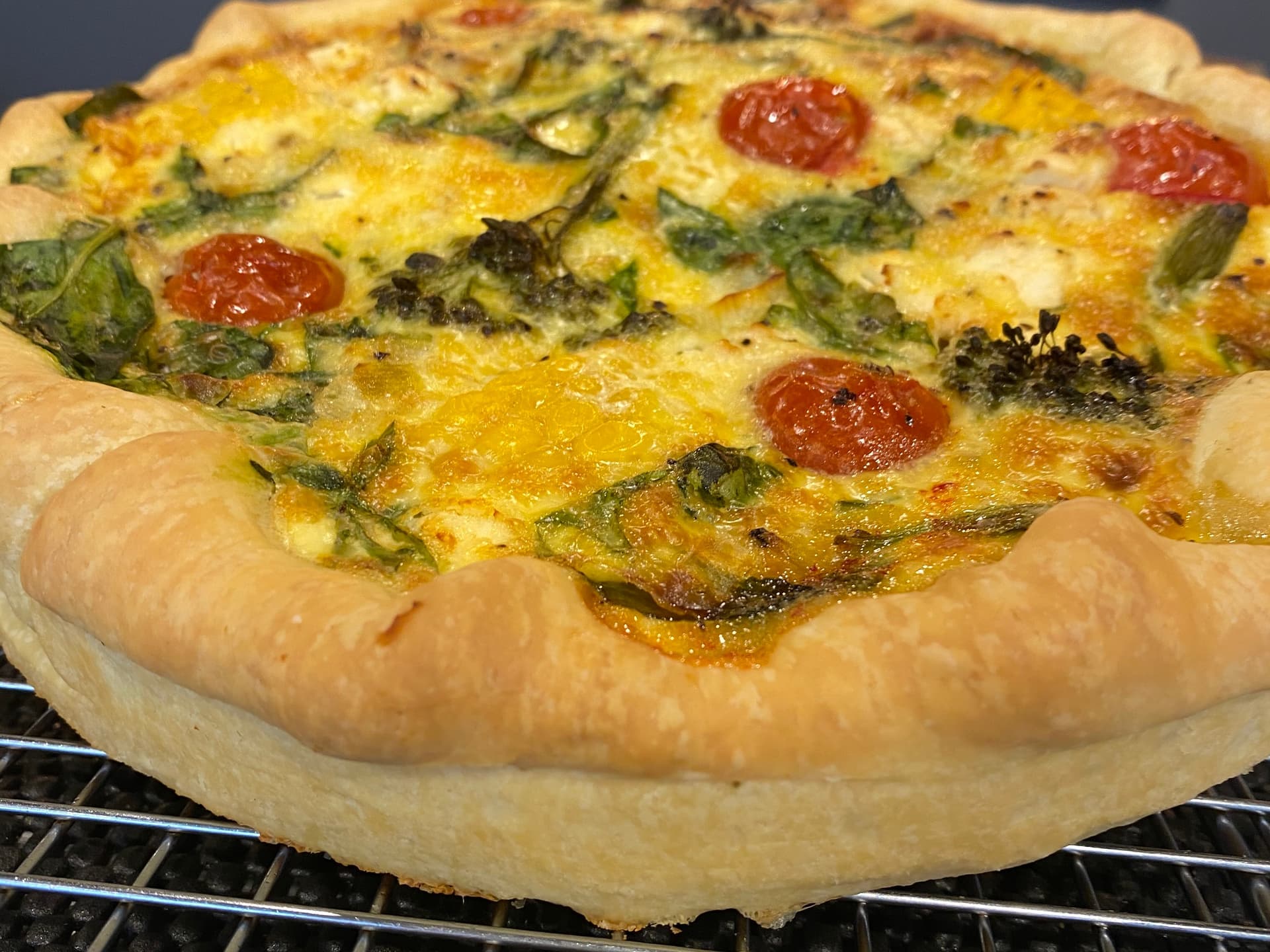 Our Chicken and Lee pie is a savoury and comforting meal with sauteed leeks, thyme, cream and finished with parmesan cheese.