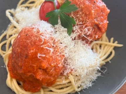 Porcupine balls are a classic meatball dish that gets its name from the rice grains that stick out of the meatballs, resembling the spines of a porcupine in a rich tomato sauce. The Porcupine balls are served with gluten free pasta.
