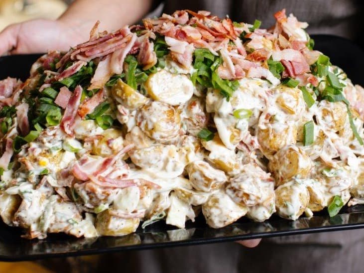 Our roasted potato salad is packed with flavour. The addition of house-made mayonnaise, bacon and hard-boiled eggs makes it a more indulgent and satisfying salad, so calling it the ‘ultimate’ potato salad.