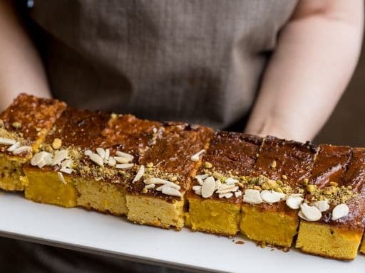 A delicious and decadent slice, made with almond meal, butter, sugar and nutmeg.
