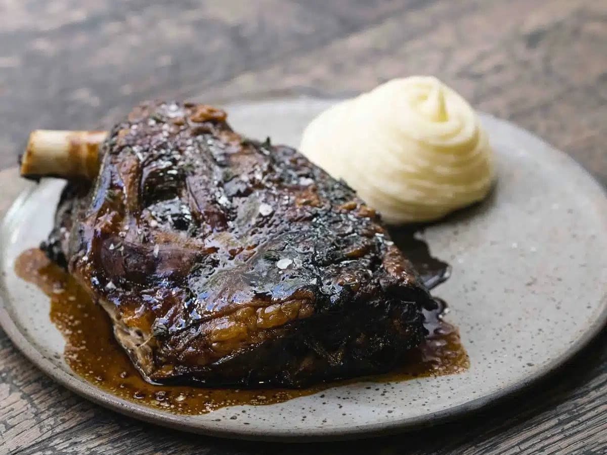 Slow roasted Victorian lamb shoulder (1.1kg), roasted overnight in a treacle marinade and finished with a spiced crust. This is a melt in your mouth dinner accompanied by silky mash potato and will comfortably feed 4 people.
