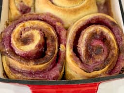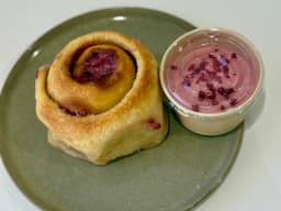 These pillowy soft Sourdough Raspberry & White Chocolate Buns are so delicious. Comes with a Raspberry cream cheese frosting which u can add yourself. When ready to devour, lightly swarm your bun in the microwave for 10-15 seconds and then top with your icing.