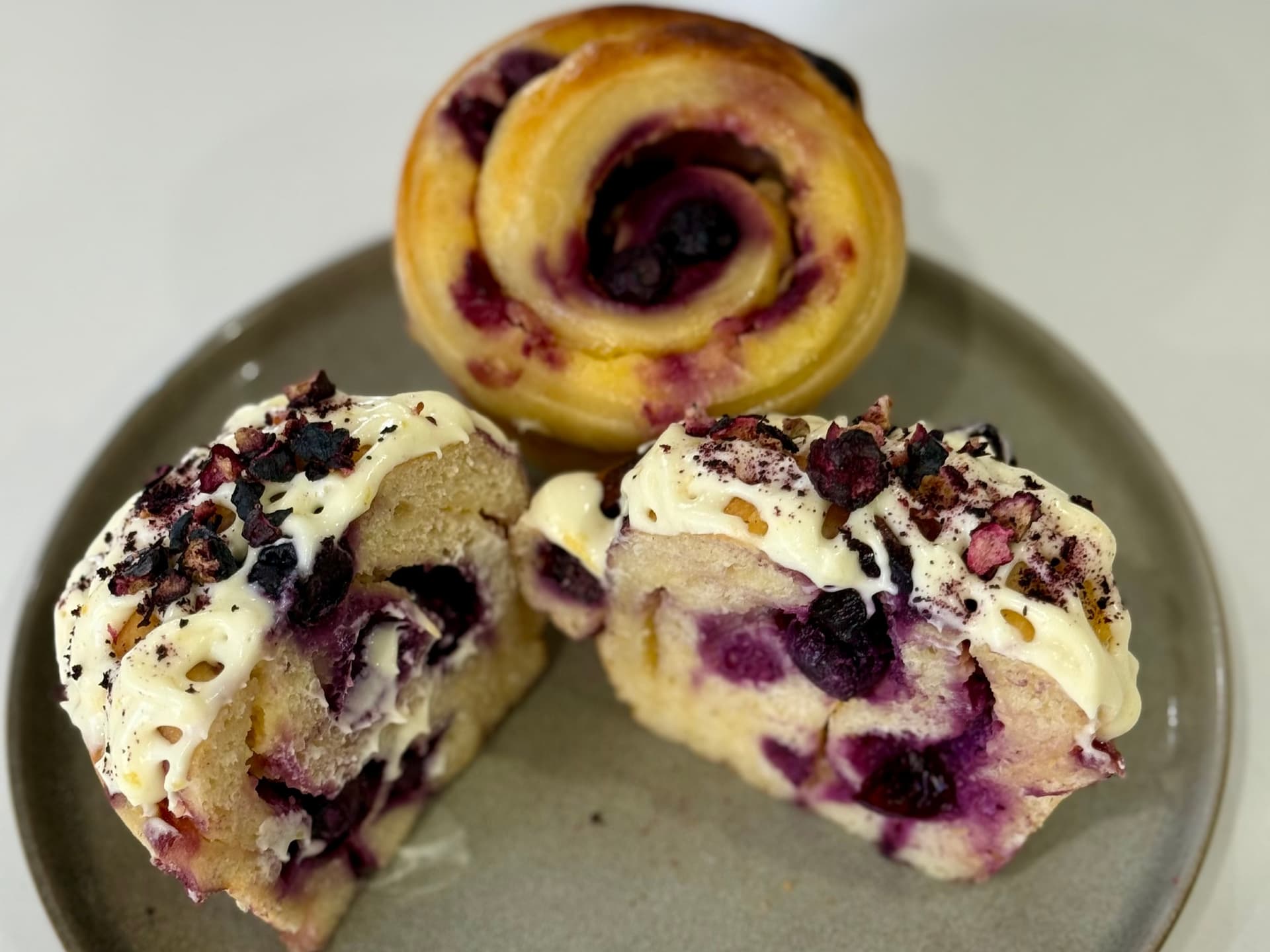 These pillowy soft Sourdough Lemon Curd & Blueberry Scrolls are delicious. Packed with Lemon Curd spread and Blueberry and a Lemon Cream Cheese Icing that comes in a separate container so when you are ready to eat your roll, warm in the microwave for 15-20 secs and top with icing. Yumm!!