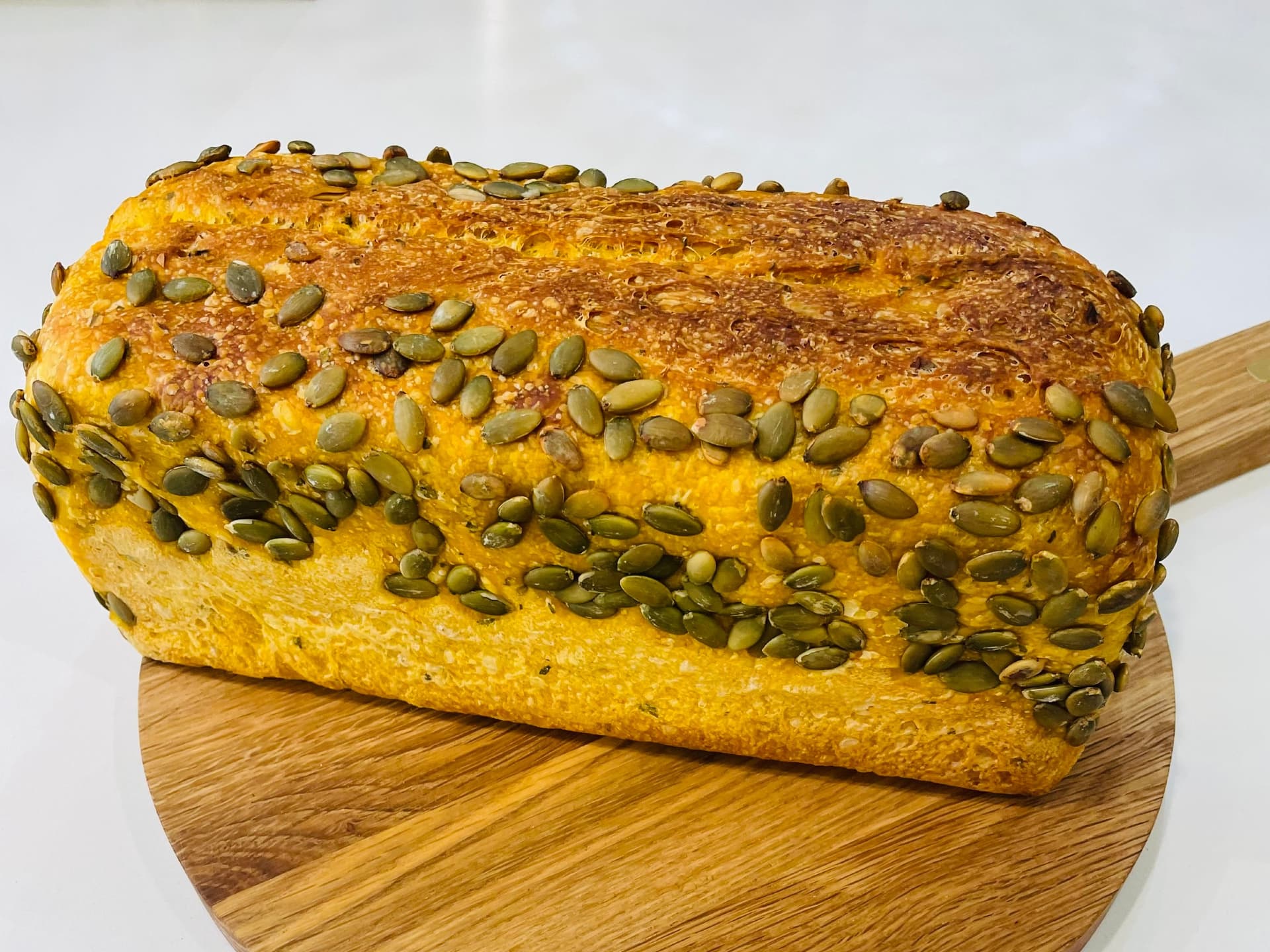 This sourdough flavour combination will delight you with its flavour and texture. Sweet pumpkin, chives and cheddar cheese blend in perfect harmony.
