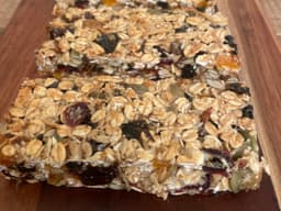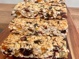 Condensed Millk (Milk), Oats, Sultanas, Dates, Shredded Coconut (Sulphites), Cranberries, Apricots, Currants (Sulphites), Pepita Seeds, Sunflower Seeds, Prunes, Sesame Seeds White, Chia Seeds, Dried Goji Berry (Sulphites)