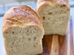 Traditional white sourdough made of just flour, water, levain and salt. Long fermented, nutritious and very tasty. This loaf is baked in a sandwich tin for a softer loaf making it easier to cut - perfect for sandwiches or morning toast.