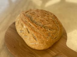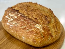 A blend of 50% white and 50% wholemeal flour made of just flour, water, levian and salt. Long fermented, nutritious and very tasty. Perfectly paired with any meal, sandwich or toast.