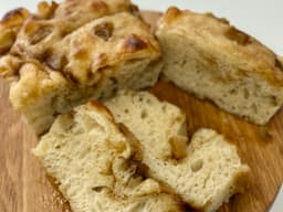 This focaccia is loaded with chunks of diced apple and then drizzled over with some butterscotch sauce before baking. This focaccia is naturally leavened, its light and airy and almost cake like but not overly sweet at all. Comes with a cream cheese icing that you can add on top yourself when ready to eat.