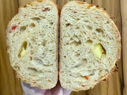 A bold sourdough infused with fiery chili, and the sweetness of chili honey and perfectly balanced with bursts of creamy brie cheese. This loaf pairs beautifully as part of a charcuterie board with cheeses and cured meats or try it with butter and an extra drizzle of honey. It's the kind of loaf that turns heads when you slice it open.