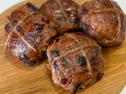 Double Choc, Cranberry & Orange Sourdough Hot Cross Buns