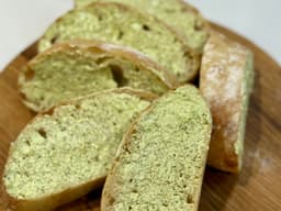 Our delicious Sourdough Ciabatta Loaf with our home made garlic butter & fresh herbs ready for you to pop in the oven with your dinner.