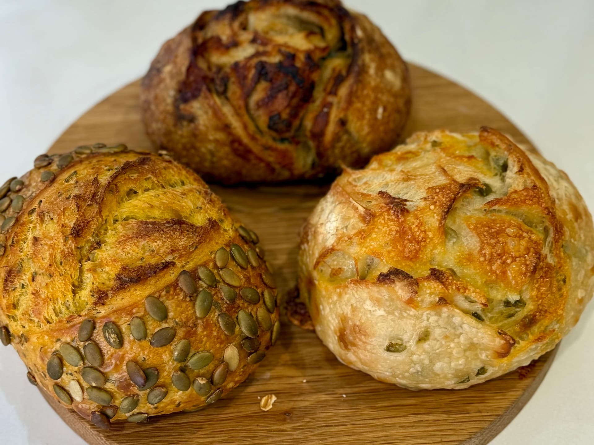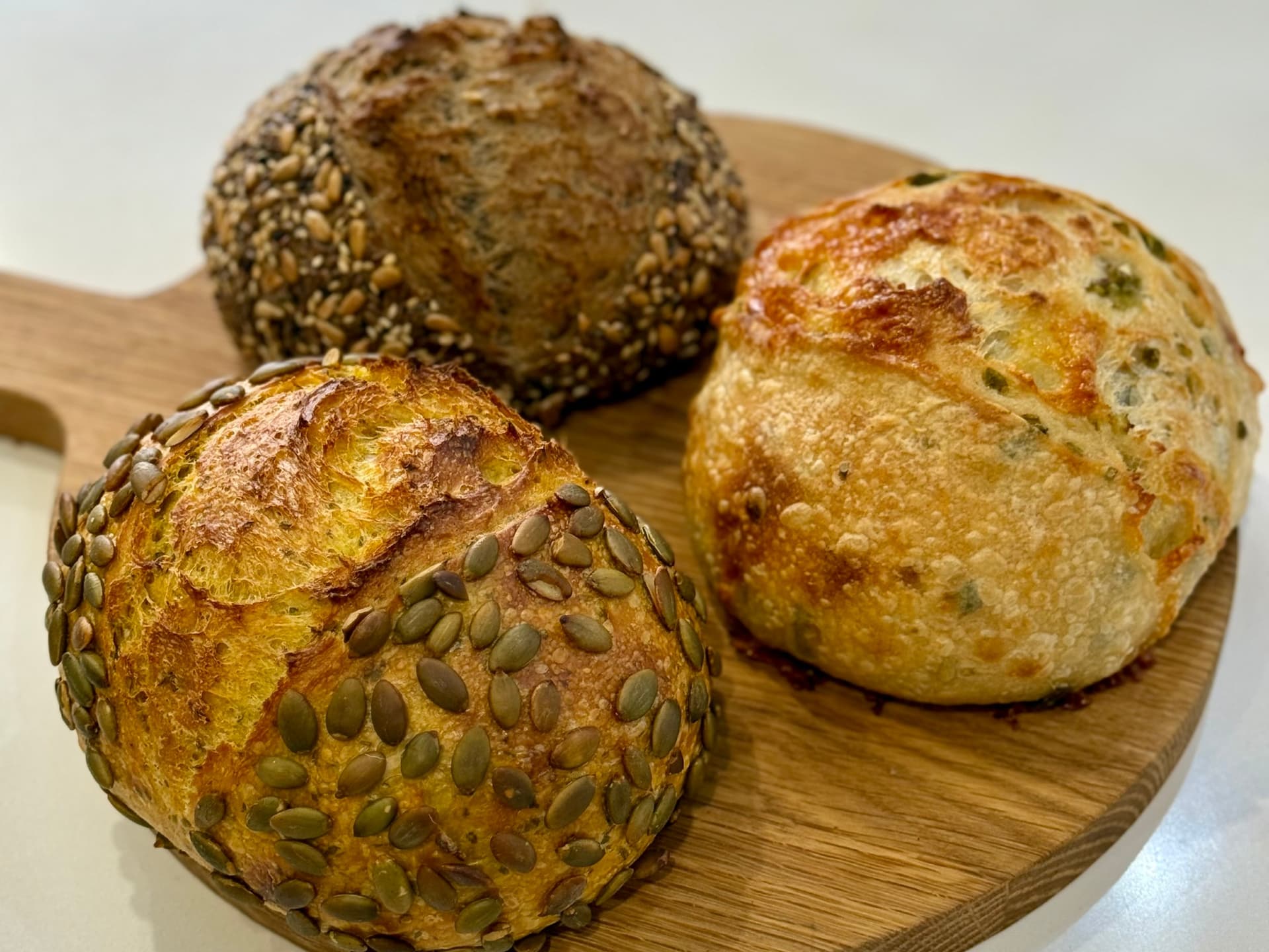 This sourdough flavour combination will delight you with its flavour and texture. Sweet pumpkin, chives and cheddar cheese blend in perfect harmony.