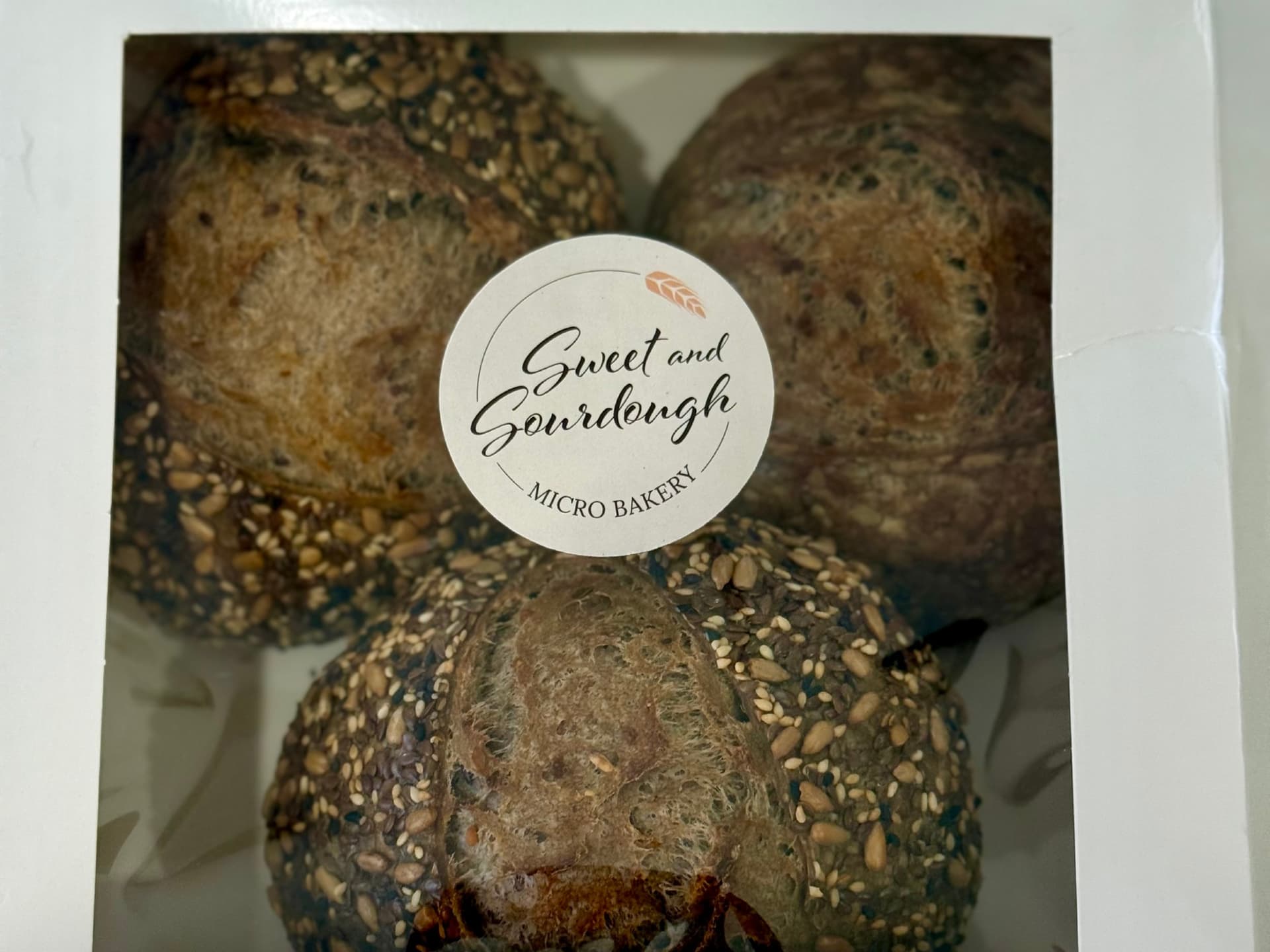 This German Rye Grain Sourdough is a dark, full of flavour and high in fibre. A robust, European-style sourdough crafted with a hearty blend of Kibbled and German Rye, mix grain, linseed, sunflower kernals, and oats. Finished with a generous rolling of mixed seeds for a golden, crunchy crust and rich nutty flavour in every bite. Baked in a Sandwich tin for a softer crust and easier to slice loaf. Perfect with savoury toppings like cream cheeses, smoked salmon, ham, or simply toasted with butter and honey.