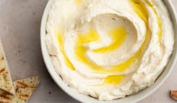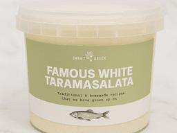 Tarama is a popular salty Greek dip made with salty cured fish roe, bread, onion, garlic, lemon and olive oil.