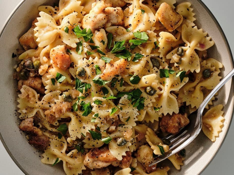 A light and delicious pasta tossed in a rich piccata sauce of chicken, lemon, capers and garlic.