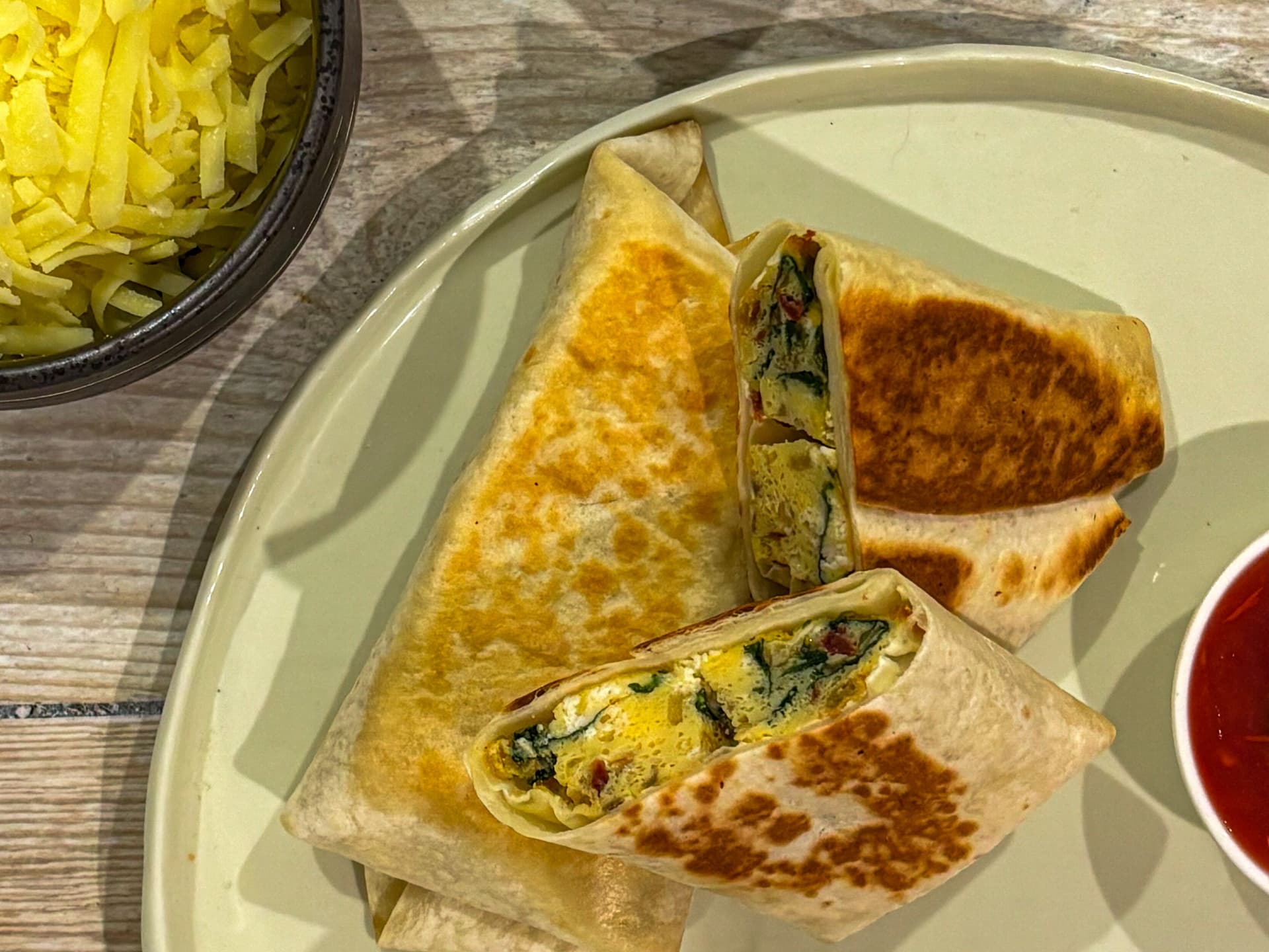 A high protein, nutrient rich and absolutely delicious burrito ready to enjoy. Perfect for breakfast or an easy lunch.