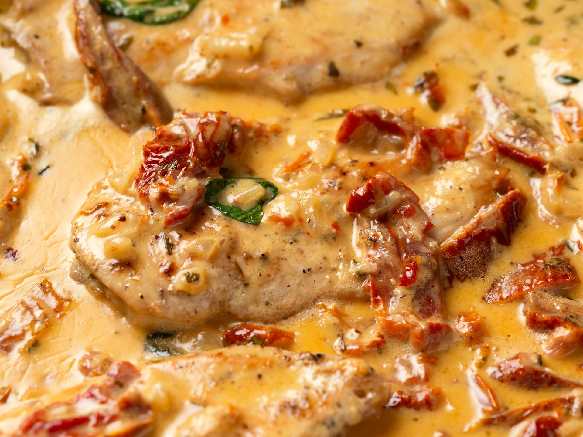 Simply delicious and ready to enjoy, tender chicken breast in luscious cream sauce enriched with sun dried tomatoes and the added goodness of baby spinach.