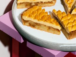 Pineapple, Gelatine, Sugar, Cream (Milk), Double cream (Milk), Salt, Almond Frangipane [White sugar, Brown butter (Milk), Egg, Almond meal, Flour (Wheat), Salt, Baking powder], Shortcrust pastry [Flour (Wheat), Butter (Milk), Water, Salt]