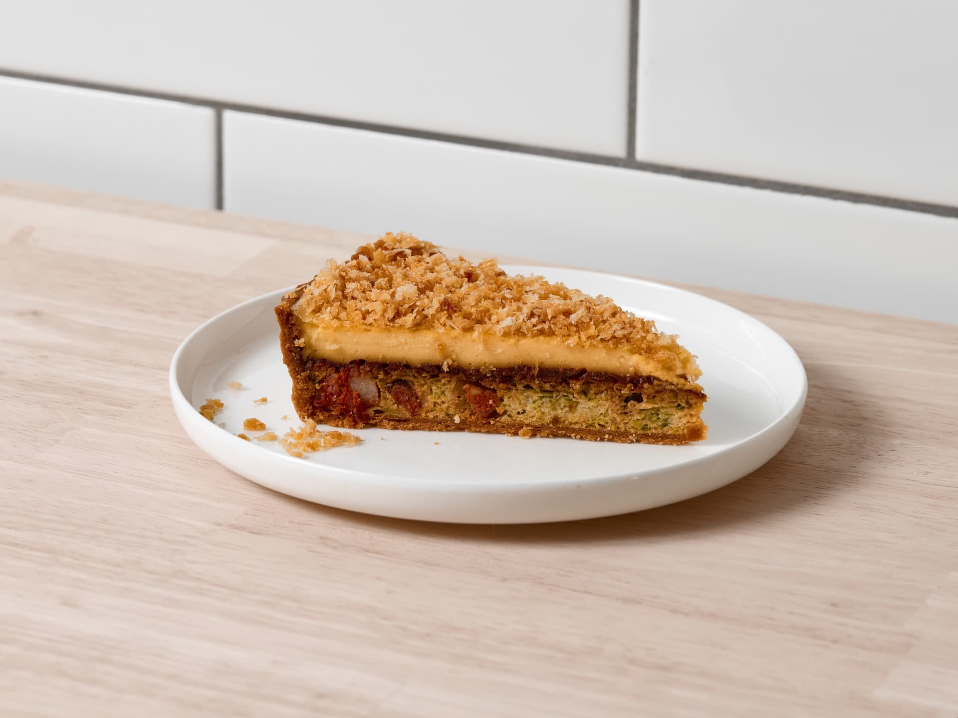 Forget every pecan pie you’ve ever had, because this isn’t a pie. It’s a tart. It's also our most famous and popular tart, so we think you're going to like it. Composed of caramel, butterscotch frangipane, toasted pecans and a smokey maple syrup glaze, this tart is sure to blow your mind and our budget (pecans are expensive).
