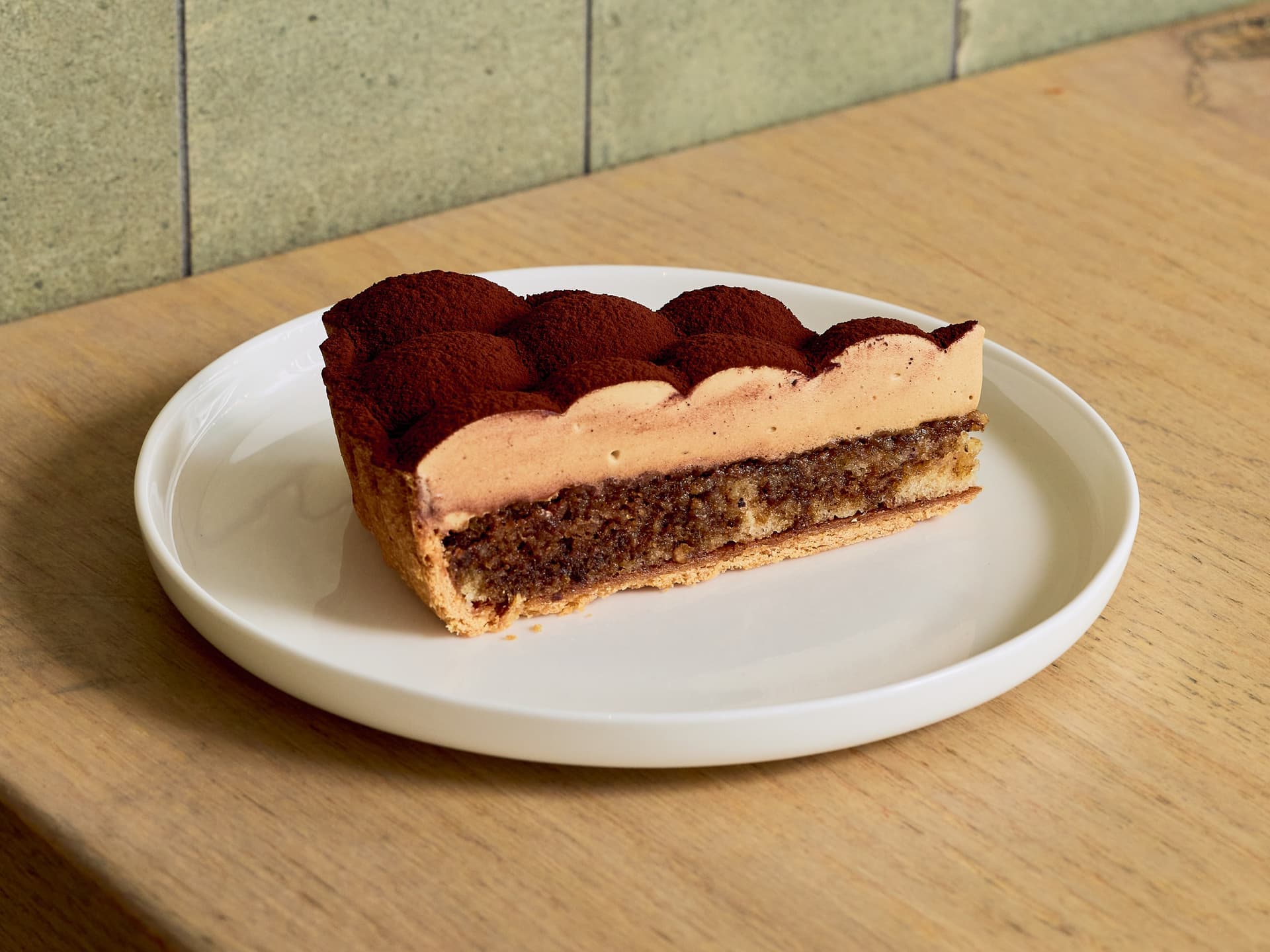 A hazelnut cake soaked in Marsala and espresso, topped with a fluffy Marsala Chantilly cream and dusted with cocoa powder, all encased in our classic shortcrust pastry shell. *This tart contains alcohol.