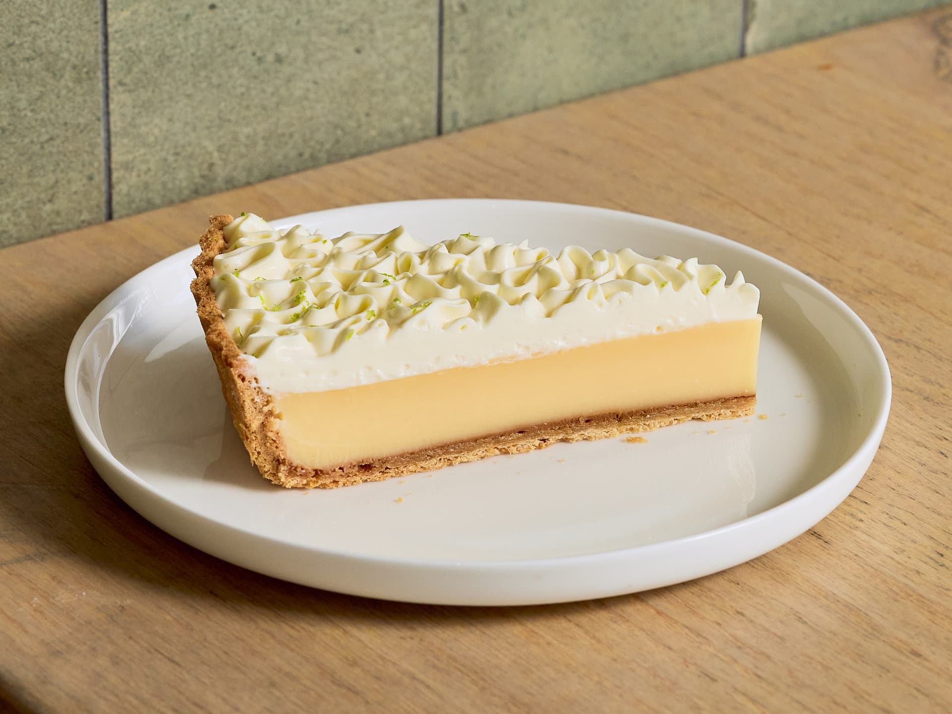 A key lime custard, topped with a lime gel and finished with a whipped lime sour cream, all encased in our classic shortcrust pastry.