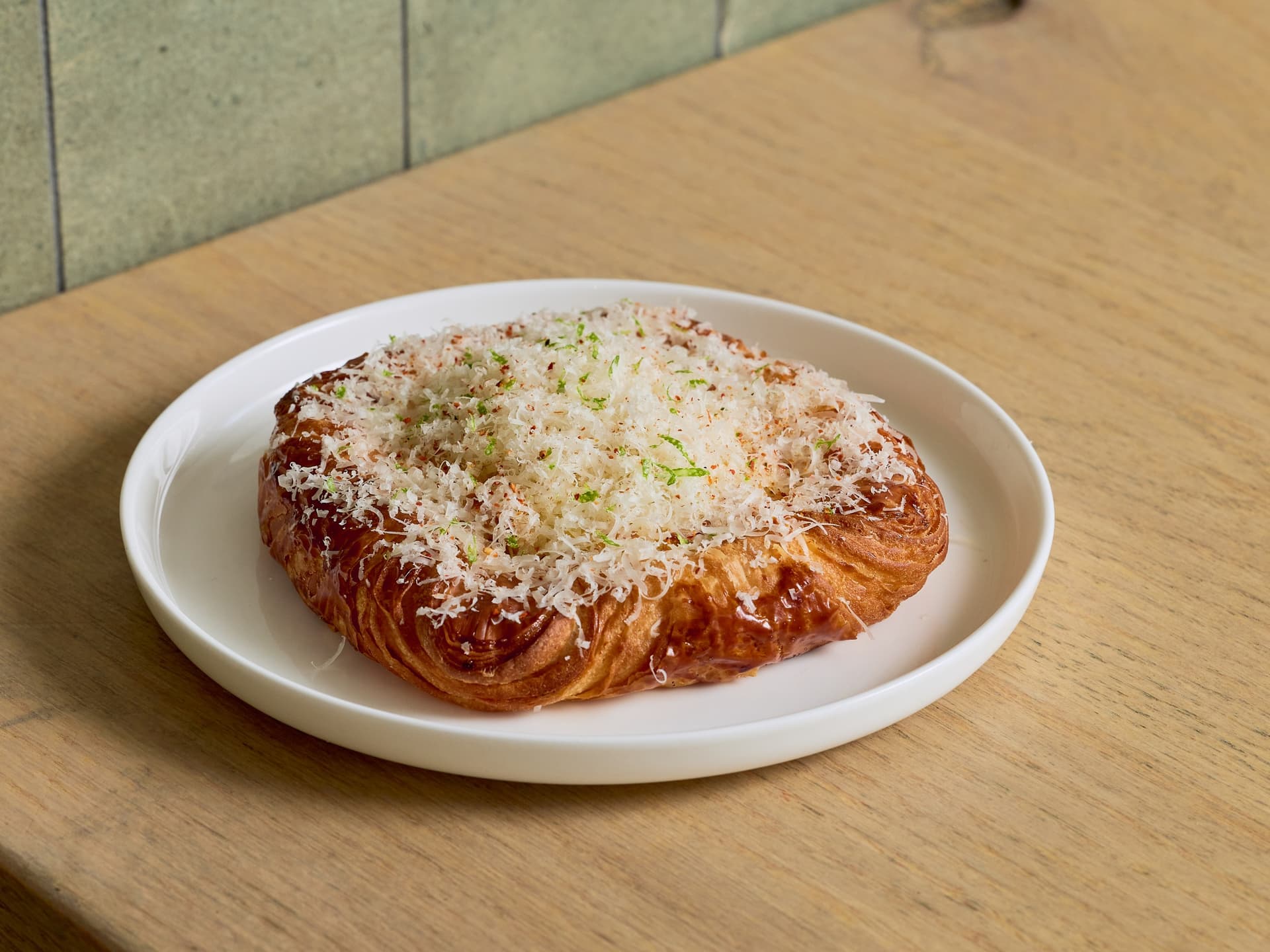 Croissant pastry filled with jalapeño cream cheese and corn custard, then finished with grated parmesan cheese, lime zest, and a sprinkle of tajín. (Multiple Packs are an online exclusive).