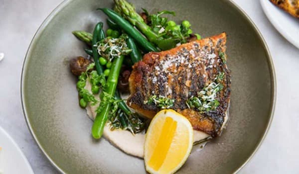 Screams summer on a plate, light fresh gluten free & dairy free. Barramundi is baked & served along side steamed seasonal greens, peas, white bean puree, topped with baby capers & gremolata ( green sauce of parsley, lemon zest & garlic).