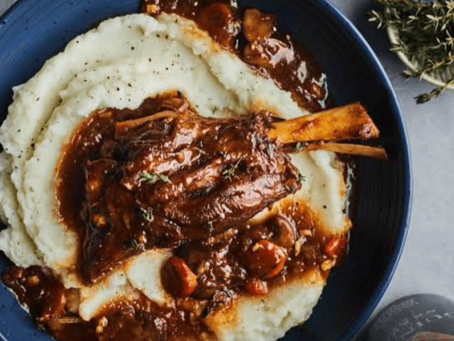 Classic comfort food dish. Lamb shank is slow cooked with vegetable soffritto, red wine, fresh herbs & tomato until fall off the bone tender. Add a side parmesan polenta, steamed rice or buttery mash potato & greens for a complete meal.