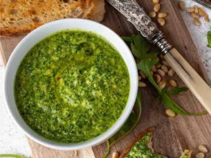 Fresh rocket is blended with extra virgin oil oil, toasted almonds, parmesan & hint of chilli & garlic. This versatile pesto is delicious tossed through freshly cooked pasta, drizzled onto seafood, roast vegetables & chicken. Or straight from the tub with bread/ crackers or fresh vegetables.